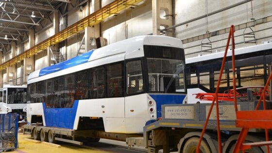 Новые трамваи поставляются из Екатеринбурга от производителя Уралтрансмаш. На заказ изготовлено 27 трамвайных составов, с учетом особенности колеи, которая в Евпатории составляет 1000 мм, также присутствует ограничение по ширине 2.2 метра. Три трамвая изготовлены в 2-кабинном исполнении.