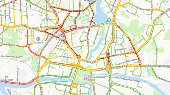 Калининград вечером в среду, 27 октября, встал в девятибалльных пробках. Об этом стало известно из сообщения очевидцев. Сведения подтверждает сервис «Яндекс.Карты».