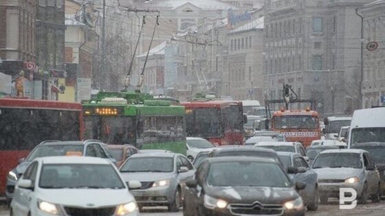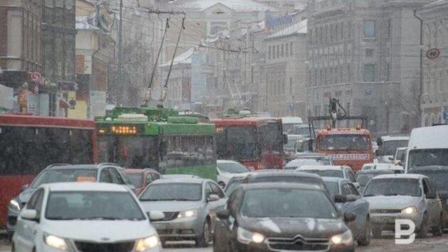 Днем на дорогах Казани образовались 8-балльные пробки