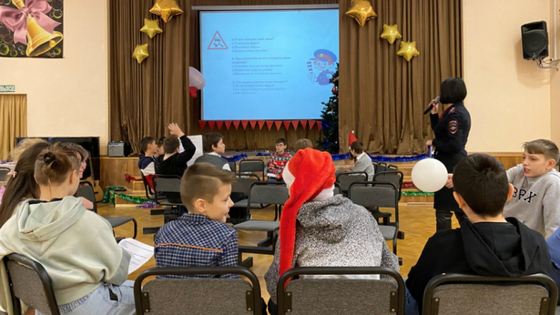 Сначала автоинспекторы напомнили ребятам об опасных ситуациях, с которыми они могут столкнуться на проезжей части и во дворе. А также рассказали о последствиях нарушения ПДД и невнимательности дороге в зимний период. После лекции школьникам предложили поучаствовать в викторине. Члены команд «Светофорчики» и «Дорожные знаки» решали задачи по ПДД, делились знаниями правил безопасности, отгадывали загадки и ребусы. В награду дорожные полицейские вручили им комиксы-раскраски.