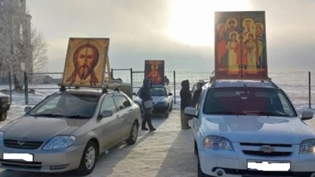 В Красноярске состоялся автомобильный крестный ход против COVID-19