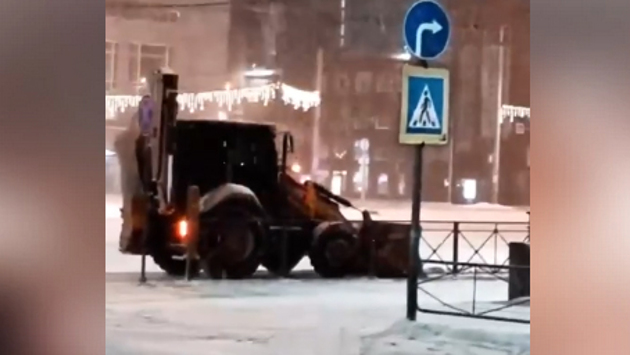 Группа «АСТ-54» в Instagram опубликовала видео, на котором видно, как трактор с тонированными стёклами убирает в тёмное время суток снег рядом с Краеведческим музеем в Новосибирске.