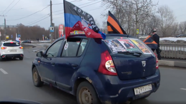 35 машин проехали по центральным улицам Нижнего Новгорода с флагами РФ, ДНР и ЛНР в поддержку Донбасса.