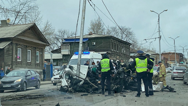 В Самаре иномарка превратилась в металлолом после столкновения со столбом