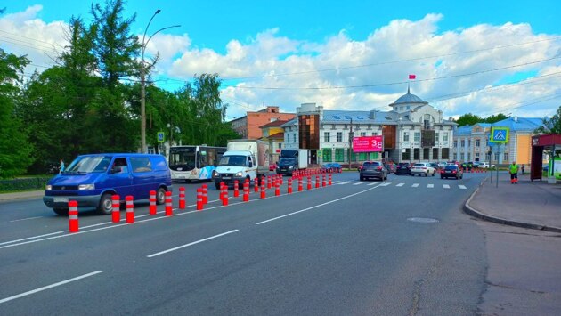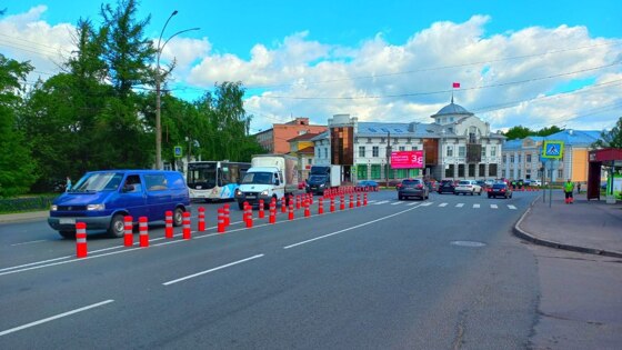 Дорожные столбики установили в Вологде на ул. Предтеченской, где изменилось движение