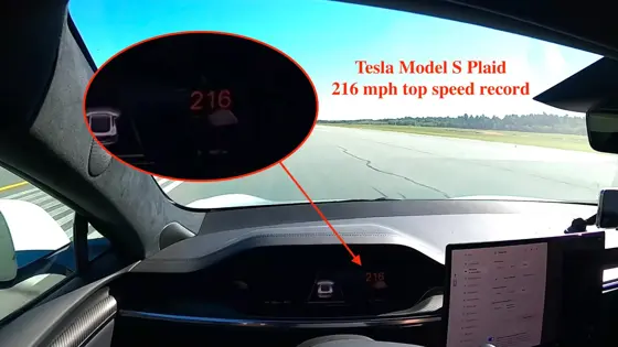 Глава Ingenext Гийом Андре за рулём собственной Tesla Model S Plaid на взлётно-посадочной полосе аэропорта Труа-Ривьер смог разогнаться до 216 миль (348 километров) в час. Не считая снятого ограничителя скорости, усиленных тормозов Mountainpass Performance и покрышек Michelin Pilot Super Sport, электромобиль был полностью стандартным.