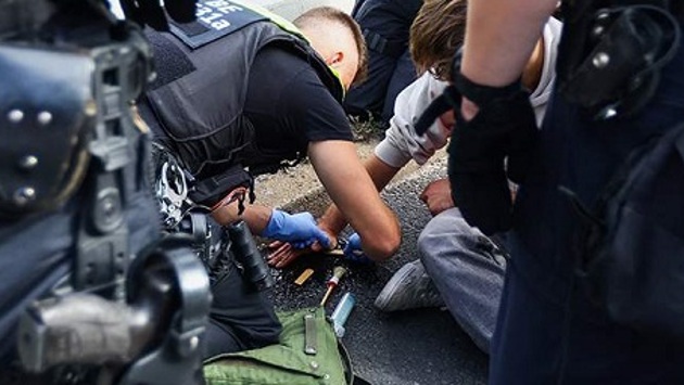 При этом полицейским приходится использовать зубило и молотки, чтобы отклеить активистов от дорожного полотна. В процессе демонтажа случаются травмы. А потом участники протестов подают на полицейских в суд.