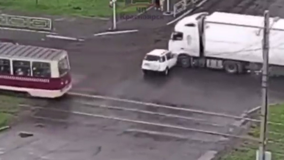 В Красноярске 62-летний водитель Honda проехал на «красный» и врезался в грузовик
