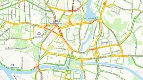 Движение затруднено на нескольких улицах: Горького, Черняховского, 9 Апреля, Железнодорожной и Правой набережной. Протяжённость затора в районе двухъярусного моста — километр. Помечает «красным» приложение и участки на пересечении Советского и Ленинского проспектов.