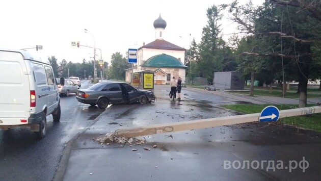 Пьяный автомобилист сбил бетонный столб в центре Вологды