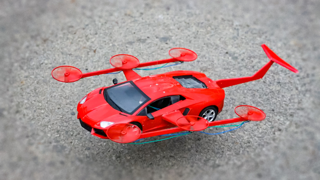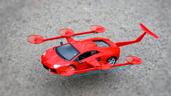 Энтузиасты с ютуб-канала Make Your Own Creation опубликовали видео процесса создания крошечного функционального дрона в виде Lamborghini Aventador. Все детали для этой конструкции были покрашены в традиционный для модели красный цвет. К дверям автомобиля прикреплены крылья, к который и крепятся вращающиеся лопасти, за счет которых автомобиль может летать.