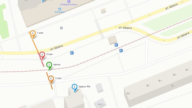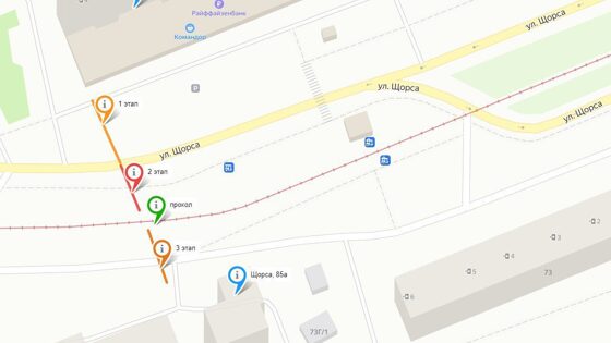 Отметим, что на всех этапах движение по ул. Щорса сохранится в обе стороны. Под трамвайными путями новые теплосети будут проложены методом прокола.