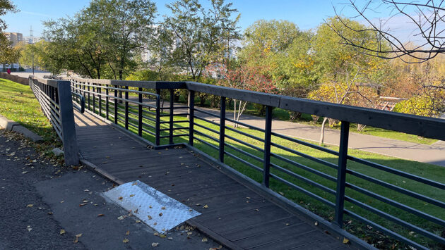 Специалисты Красгорпарка понизили уровень бордюра и установили металлическую планку.