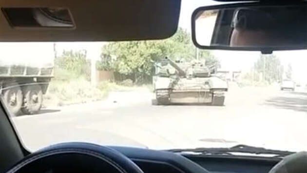 На Украине танк на полном ходу чуть не раздавил автомобиль с людьми