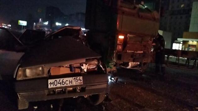 Три молодых человека на «девятке» разбились в ночном ДТП с грузовиком в Новосибирске