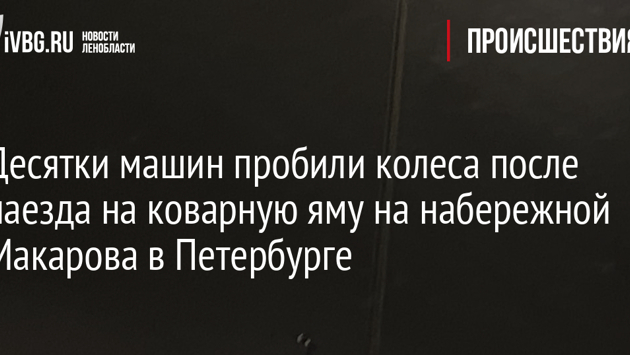 Десятки машин пробили колеса после наезда на коварную яму на набережной Макарова в Петербурге