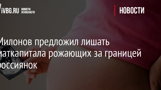 Депутат Госдумы Виталий Милонов предложил лишать материнского капитала рожающих за границей россиянок, заявил он в эфире радиостанции «Говорит Москва». По мнению парламентария, женщины специально уезжают за рубеж, чтобы обеспечить себе и ребенку двойное гражданство, поэтому они не должны рассчитывать на российские социальные программы. Он напомнил, что программ, схожих с материнским капиталом, нигде в мире больше нет, и перед его получением ребенок и мама должны быть только гражданами России.