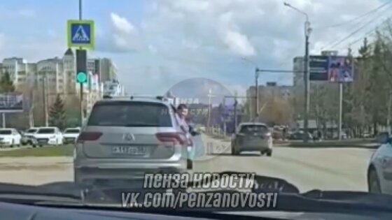 Кадры появились в Telegram-канале «Пенза Новости» вечером в среду, 5 апреля. Их сделала пассажирка автомобиля, который следовал за машиной нарушителя.