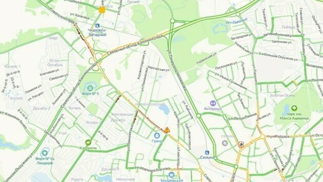 Заторы образовались на Советском проспекте. Машины стоят и на въезде в город. Общая дорожная ситуация в городе оценивается в четыре балла.