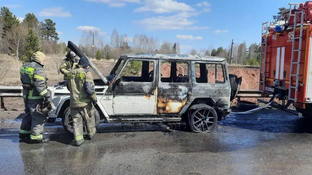 Под Красноярском автомобиль Mercedes-Benz G-класса не стал останавливаться на требование сотрудников ГИБДД и пустился на утек, передают «Известия». При этом, попытавшись ускориться, иномарка начала гореть на 870-м километре трассы Красноярск – Канск.