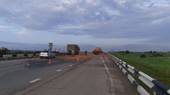 В Славянском районе Кубани фура протаранила грузовик с кирпичами
