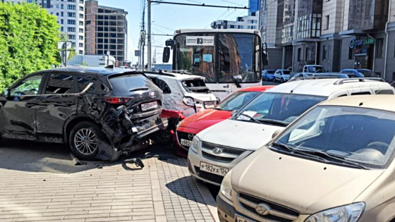 В центре Красноярска автобус столкнулся с пятью автомобилями