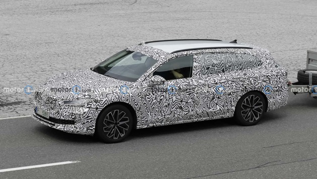 Что касается универсала, дизайн задних фонарей выглядит немного больше, чтобы лучше сочетаться с пропорциями большей задней части. Длинная крыша по-прежнему выглядит как рабочая лошадка, когда это необходимо, и как спортивный универсал, когда он свободен от привязанного прицепа. Прототип универсала также дает нам краткий обзор новой приборной панели Superb с большим количеством цифровых экранов.