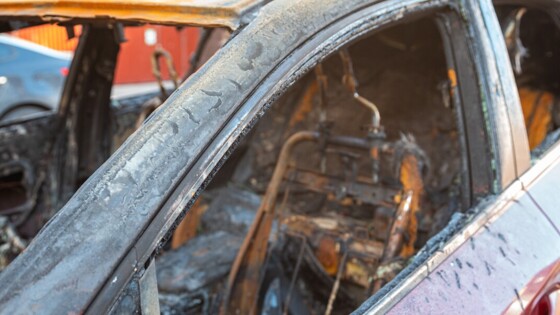 На кадрах с уличной камеры видно, как двое неизвестных обливают чем-то машины, а после этого вспыхивает пламя. Причем, огонь быстро охватил транспортные средства, и к приезду спасателей от машин мало что осталось.