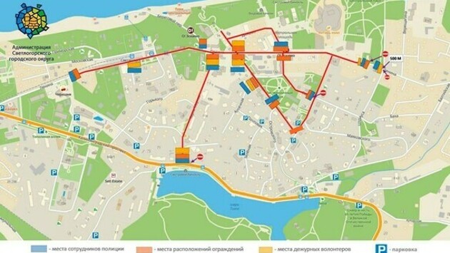 С 08:00 до 23:59 будет запрещено движение всех видов транспорта по Ленина (от перекрёстка с улицей Штрауса до ж/д вокзала «Светлогорск-2»), К. Маркса, Динамо и Октябрьской. «Рекомендуем пользователям автомобильных дорог объезжать перекрытые участки улично-дорожной сети по ул. Майский проезд и Калининградский проспект г. Светлогорска», — говорится в сообщении.Муниципальная парковка на Ленина будет зарезервирована для транспорта артистов. В 23:59 из города отправится «Ласточка» в Калининград.