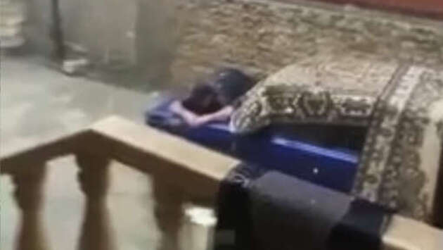 В Дагестане мужчина прикрыл машину от града коврами и своим телом