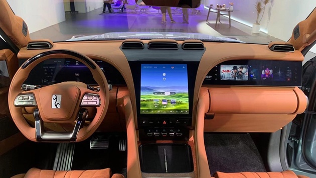На центральной консоли - планшет с вертикальной ориентацией, перед передним пассажиром - тачскрин персональной мультимедиа диагональю 23,6 дюйма, которые китайцы насчитали, вероятно от левого нижнего угла до правого верхнего (экран ассиметричен). Перед водителем - конфигурируемая цифровая приборная панель такой же диагонали. Ещё два экрана диагональю 12,8 дюйма - на спинках передних сидений.