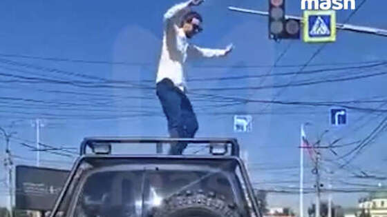В Туле пассажир вылез из внедорожника и станцевал на крыше машины