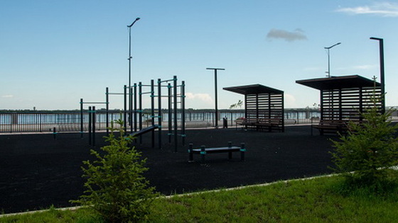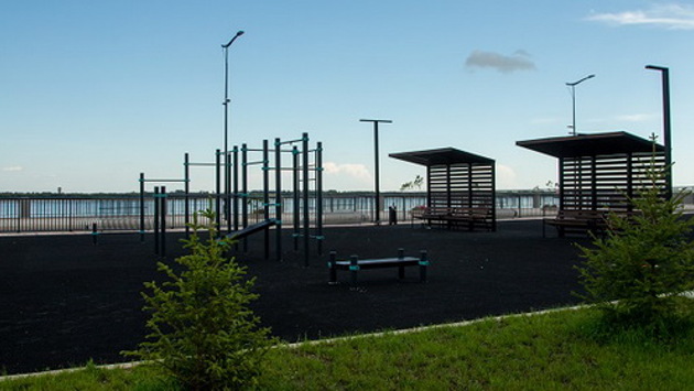 Новая набережная пролегает от судостроительного завода до нового физкультурно-оздоровительного комплекса. Ежедневно здесь трудятся около 80 рабочих, которым ещё предстоит нанести разметку на велодорожку и провести дополнительное озеленение.
