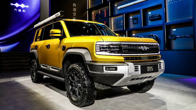 Напомним основные технические характеристики FangChengBao Leopard 5, тем более что часть из них была уточнена уже после премьеры: габаритная длина — 4890 мм, ширина — 1970 мм, высота — 1920 мм, колёсная база — 2800 мм. Дорожный просвет в стандартном положении подвески — 220 мм, максимальный — 310 мм. Глубина преодолеваемого брода — 700 мм. Снаряженная масса — 2850 кг. Допустимая масса буксируемого прицепа — 2,5 т. Штатные колёса — 18- либо 20-дюймовые.