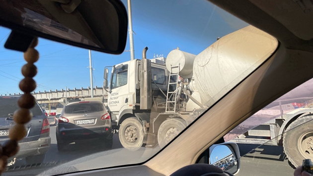 Бетономешалка заблокировала подъезд к «кольцу ада» в Новосибирске