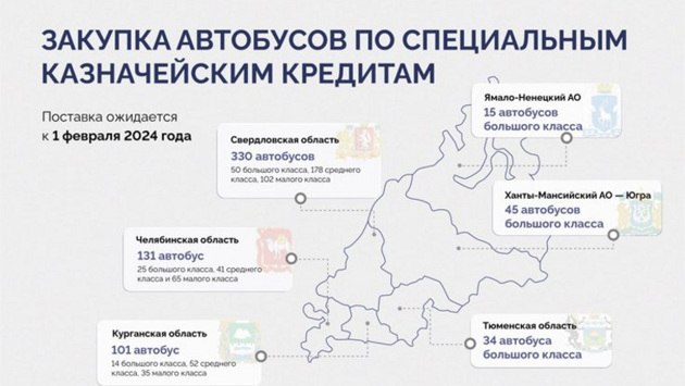 Регионы УрФО получат 656 автобусов к февралю 2024 года