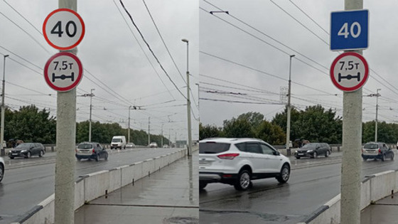 Теперь ехать можно 40 км/ч (плюс 19 км/ч нештрафуемого порога). Ранее на въезде был лишь рекомендательный указатель. По данным ГИБДД, на мосту установлены камеры в обе стороны движения, которые фиксируют превышение скоростного режима.