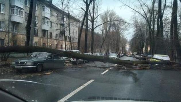 "Улица Ерошевского была перекрыта. Два авто сильно пострадали, одно отделалось небольшими повреждениями, - сообщают очевидцы. - На "Волге" на крыше лежит ствол, у "копейки" вообще отрубило багажник".