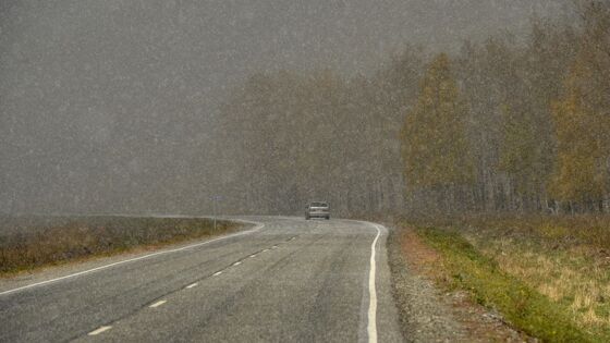 Движение грузового транспорта ограничивали из-за сильного снега и ухудшения видимости.