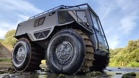 Вездеход имеет отличную проходимость по пересеченной местности и возможность форсирования водных преград. Управлять им легко и комфортно благодаря интеллектуальной системе управления и системе безопасности.
