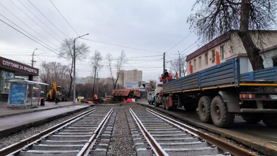 На улице Слонова несколько дней назад началась укладка шпал по трамвайному маршруту №9. Сейчас рабочие укладывают на них рельсы. Также активно идут подготовительные работы перед укладкой шпал по улице Политехнической. Рабочие проводят капитальный ремонт двух тяговых подстанций. Параллельно идёт монтаж опор контактной сети.