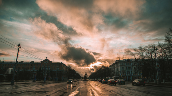В центре Кемерова наблюдается "пик" дорожных заторов. Самое плотное скопление автомобилей образовалось около крупного торгового центра.