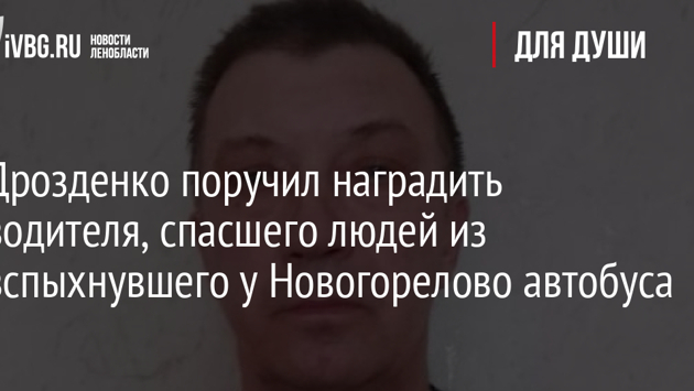 Губернатор Ленобласти Александр Дрозденко поручил представить к областной медали «За отличие в тушении пожаров» водителя автобуса №842 «Санкт-Петербург — Ивангород» Игоря Любко. Во время одного из рейсов автобус загорелся на кольцевой автодороге. Игорь Любко не растерялся и мгновенно среагировал: смог открыть заблокированные двери, вывести людей и потушить возгорание. Никто из пассажиров не пострадал. Игорь уже 11 лет перевозит пассажиров на автобусах, конкретно на этом межрегиональном маршруте отработал год.