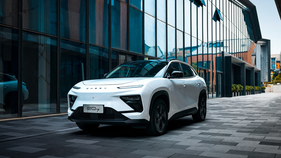 Электрический eQ7 дебютировал в Китае летом 2023 года. Это кроссовер размером со Skoda Kodiaq, с короткими свесами и несколько необычными для Chery плавными линиями кузова. У него двухуровневая оптика с тончайшими светодиодными блоками сверху и сплошной фонарь на корме. Электрокар оснащен 211-сильным мотором, который питает батарея мощностью 67 киловатт-часов. Одного ее заряда хватает на 512 километров автономного пробега.