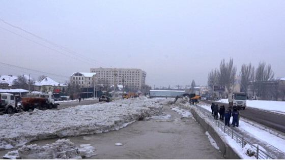 «На данный момент работает четыре единицы экскаватора, три самосвала, кроме того два погрузчика фронтальных и четыре снегоуборочных автомобиля», – отчитался начальник отдела чрезвычайных ситуаций Октябрьского района Бишкека Акылбек Абдуллаев.