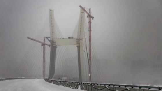 Сейчас на всех строительных площадках мостового перехода работает всего 130 человек. Идут работы в тоннеле под Транссибом по основному ходу трассы и монтаж конструкций на пункте взимания платы за проезд по мосту.