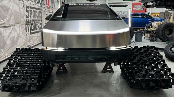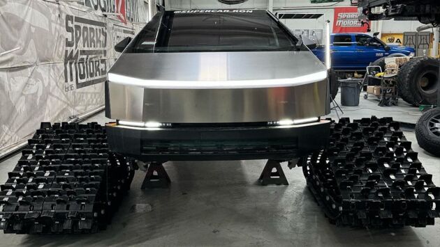 Американский тюнер Дейв Спаркс превратил электропикап Tesla Cybertruck в гусеничный снегоход. Для этого проекта каждое из колёс электропикапа было заменено на гусеницу, и создатель автомобиля отмечает, что это его самое «нелепое и восхитительное, что он когда-либо делал». Отметим, что ранее Спаркс переставлял на гусеницы Jeep Gladiator и школьный автобус.