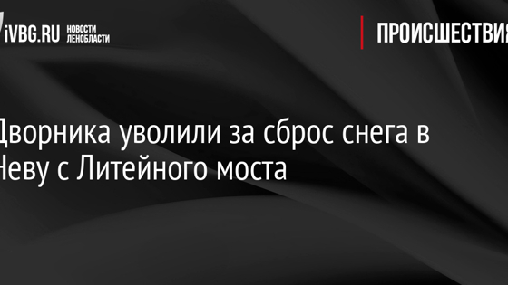 Дворника, который при уборке пешеходной зоны сбрасывал снег с Литейного моста в Неву, уволили. Ранее на работника пожаловались жители Петербурга. Подрядчику было направлено предупреждение о недопустимости подобных действий, рассказали в пресс-службе СПб ГБУ «Мостотрест». Видео: Питер Решает, ВК Также в компании отметили, что к работнику, участвовавшему в сбросе снега, будут приняты соответствующие меры, в том числе его ждет дисциплинарная ответственность. Позже в компании сообщили, что его уволили. Напомним, за загрязнение ледовой поверхности водных объектов предусмотрен штраф до 300 тыс. рублей.