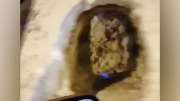 На видеозаписи, сделанной из кабины автомобиля, видно, что у одного из светофоров города скопилось большое количество снега, который мешал пешеходам пройти по переходу через дорогу на тротуар. В одном из таких сугробов можно увидеть небольшой туннель.