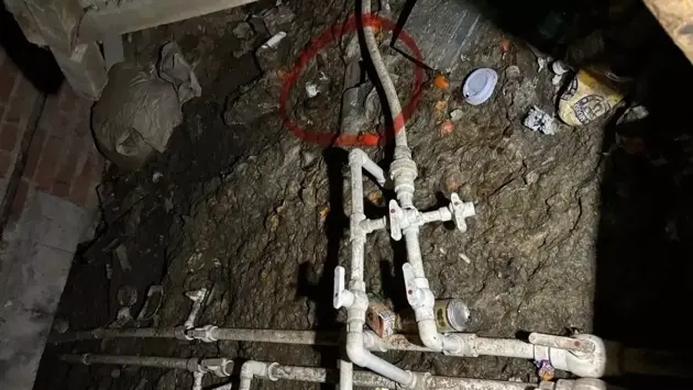 «В диспетчерской сказали, что специально вырезали часть трубы, потому что пусть лучше в подвал течет, чем в поликлинике чистить придется. Вырезали, чтобы не засорились туалеты в поликлинике на первом этаже», — сообщили жильцы. Один из жителей проблемного дома снял видео, на котором заметно аккуратно вырезанное отверстие в трубе.